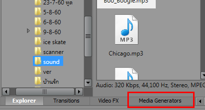 - ต่อมา มุมบนซ้าย มีส่วนที่ใช้ประจำคือ Explorer ใช้ตอนเราจะเลือกไฟล์เข้ามาตัดต่อ ตรงมุมนี้เราสามารถเลือกรูปแบบที่แสดงไฟล์ได้ค่ะ เลือกแบบ